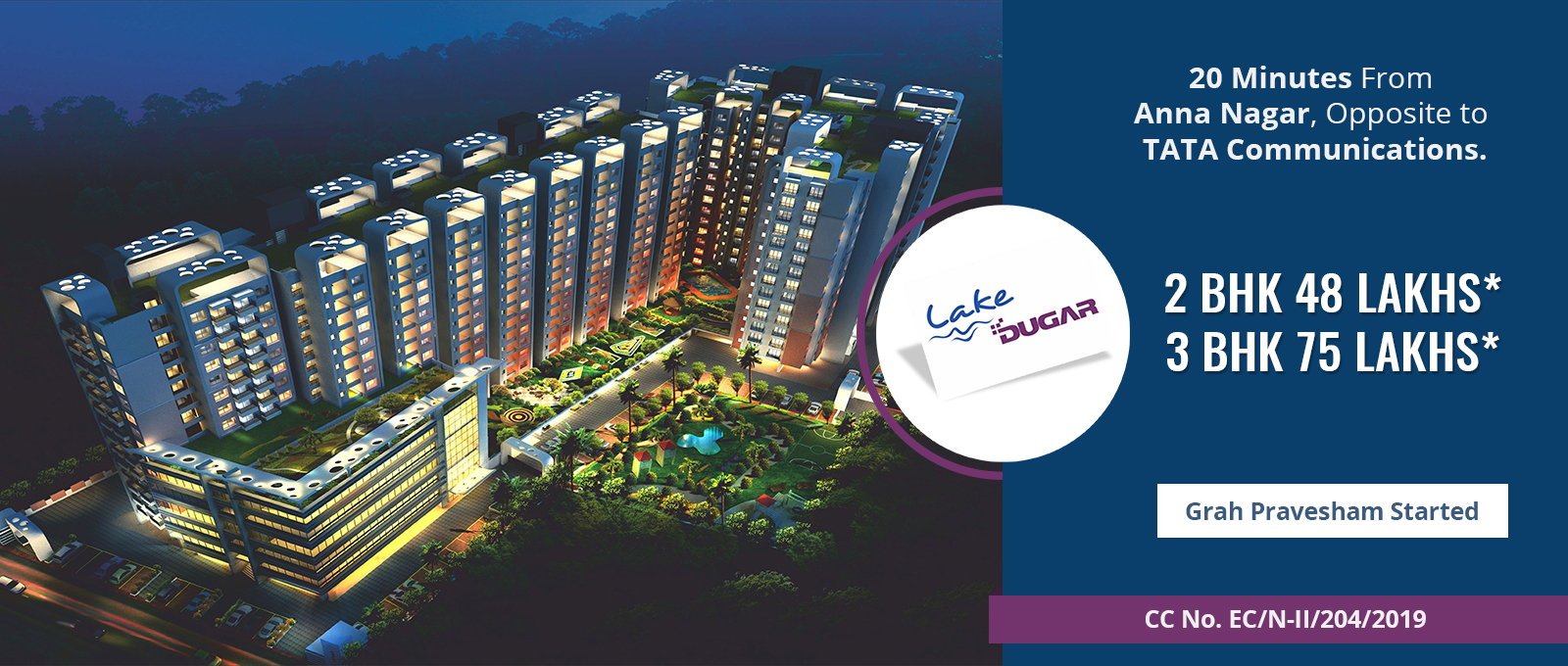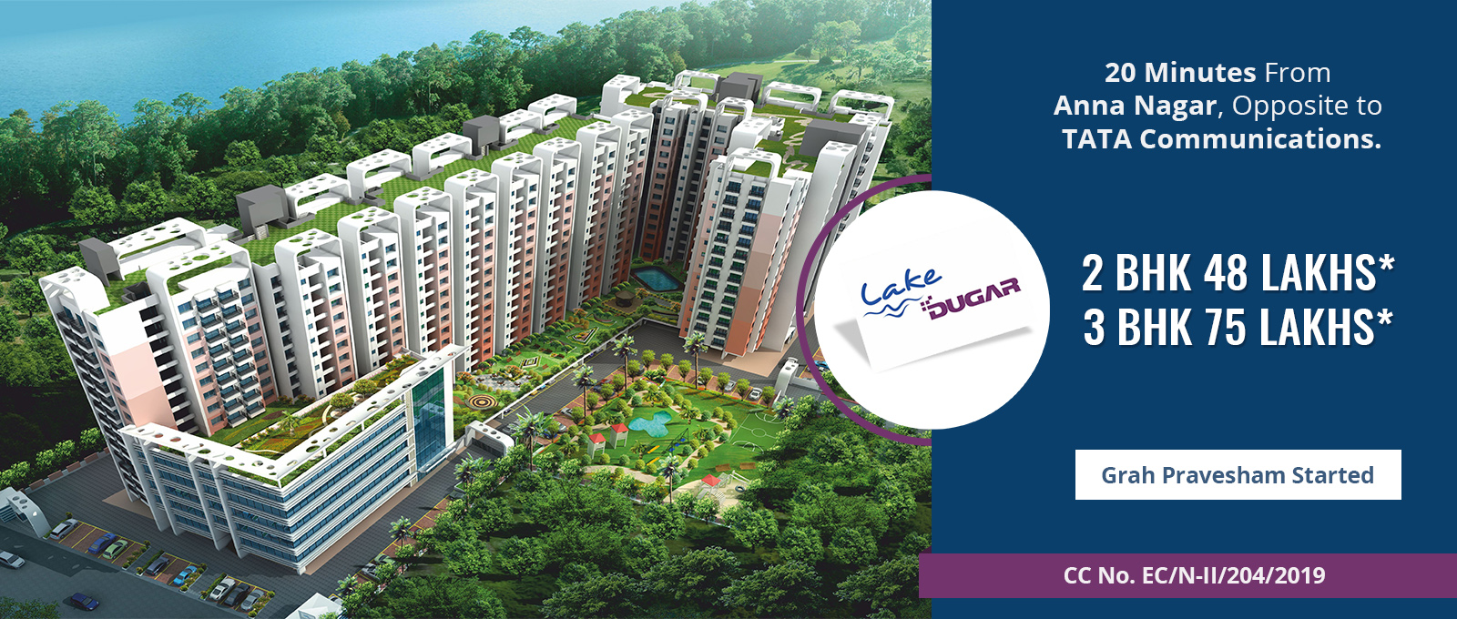 LAKE DUGAR is located within Chennai Corporation limits at Ambattur. Just 20 minutes from Anna Nagar. LAKE DUGAR is opposite Tata Communication on the 120 feet road.LAKE DUGAR has a breathtaking view of the Puzhal lake from most of the apartments