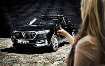 Smartphones can be extensively networked with the vehicle using the Borgward Connect Intelligent Connectivity System. The driver therefore has unhindered access to all smartphone functions. Conversely, smartphone apps give the authorised user specific access to the vehicle at any time and anywhere. Thanks to WiFi hotspots integrated into the vehicle, occupants can also log into the internet with end devices such as smartphones, tablets or netbooks.